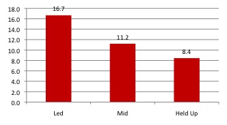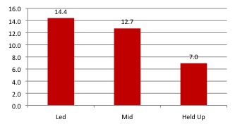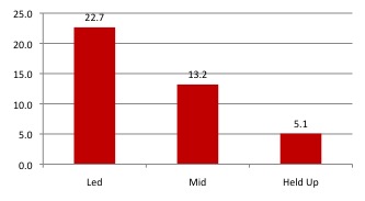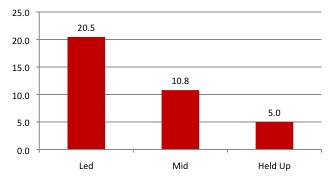 The Pace Indicator (PI) is a quick representation of the analysis, and indicates the style of running which is most favourable over each particular distance. A PI of 2 would indicate that all winners led. A PI score of 0 would mean that all winners were held up. Obviously the actual figure is always somewhere in between depending on the pace bias which exists.
