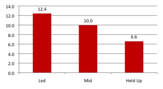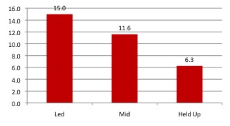 For races over 7F+ the analysis indicates that the course is pretty fair to all types of runners, if maybe being a bit favourable to hold up horses. It is said that because the 12 furlong course starts with a steep uphill section horses that rush to the front to lead at the beginning can't win, however the stats don't really bear this out.