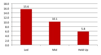 The three different styles are horses that led, horses which were mid pack, and horses held up at the back.