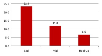 The three different styles are horses that led, horses which were mid pack, and horses held up at the back.