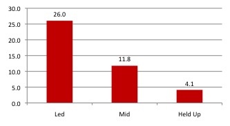 The Pace Indicator (PI) is a quick representation of the analysis, and indicates the style of running which is most favourable over each particular distance. A PI of 2 would indicate that all winners led. A PI score of 0 would mean that all winners were held up. Obviously the actual figure is always somewhere in between depending on the pace bias which exists.