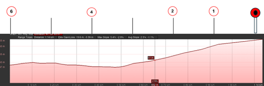 The races over a mile have a similar profile to the sprint races. In that they start pretty flat but the last half of the race is pretty much uphill all the way. As a consequence the mile course is a very stiff course.